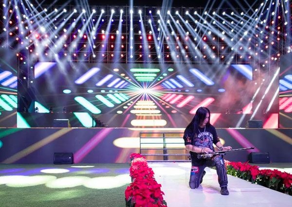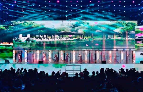震撼的燈光秀,使人仿佛進(jìn)入一個(gè)璀璨流彩絢麗的時(shí)空。首次出現(xiàn)在巨石年會(huì)晚會(huì)現(xiàn)場(chǎng)的威亞,結(jié)合了打鼓和燈光的元素,視覺效果令人眼前一亮。