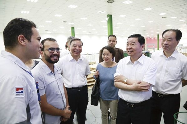 郝鵬一行深入巨石埃及公司生產(chǎn)車間,詳細(xì)了解生產(chǎn)工藝流程、技術(shù)創(chuàng)新、海外銷售、支部建設(shè)、員工隊伍管理和文化融合等情況。