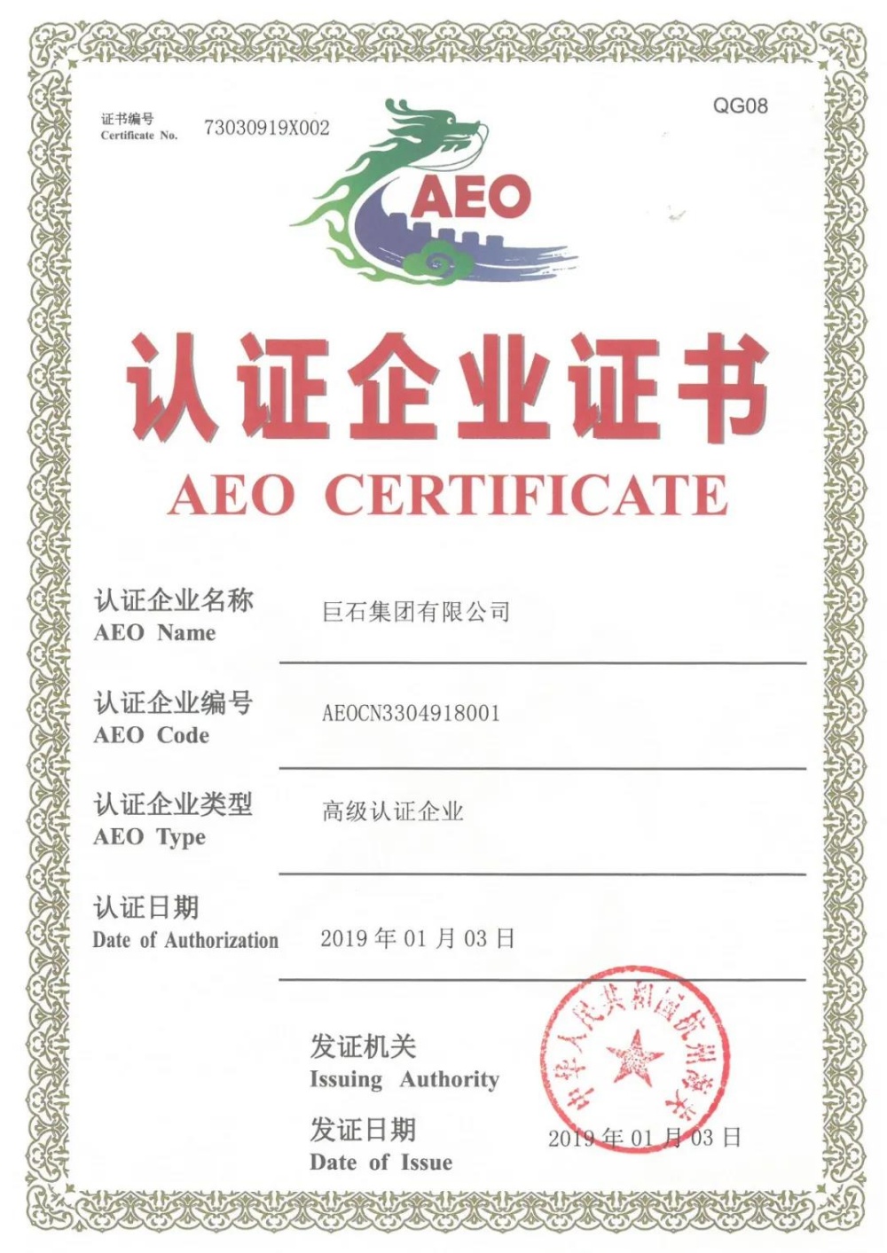 2021年10月11日,巨石收到杭州海關(guān)簽發(fā)的《重新認證通過通知書》,標志著公司可以繼續(xù)享受海關(guān)AEO高級認證帶來的通關(guān)便利和優(yōu)惠政策。