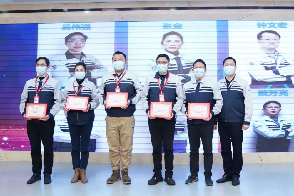會(huì)議對(duì)2021年度在綠色發(fā)展工作中的先進(jìn)個(gè)人進(jìn)行了表彰,曹?chē)?guó)榮向 “巨石最美環(huán)保人”頒獎(jiǎng)。