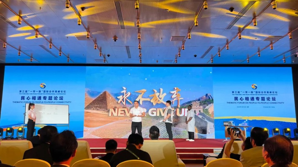 民心相通專題論壇在國家會議中心舉行,論壇由中聯部主辦,中央統(tǒng)戰(zhàn)部、中央社會工作部等20多家單位協辦,包括主旨演講、嘉賓致辭、主題交流、成果發(fā)布等內容。其中,節(jié)目《“一帶一路”上的幸福生活——永不放棄》參加主題交流環(huán)節(jié)的演出。