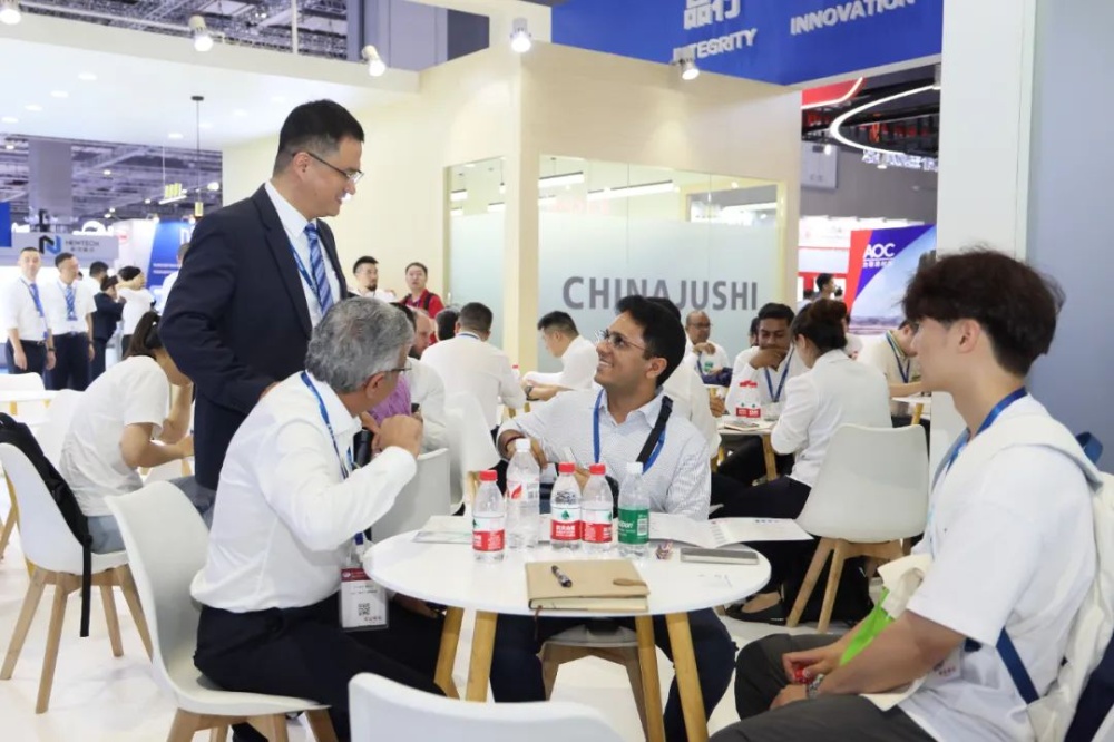 在展臺現(xiàn)場,銷售研發(fā)團隊紛紛向老客戶傳遞發(fā)展信心,向新客戶展現(xiàn)發(fā)展動能。眾多行業(yè)同仁及客戶前來觀摩、咨詢、洽談,就行業(yè)未來發(fā)展趨勢、產(chǎn)品和研發(fā)需求進行了深入交流。“老朋友”熱情依舊,“新面孔”慕名而來,展臺現(xiàn)場座無虛席,一片火爆。今年上半年,中國巨石通過對公司產(chǎn)品的有序復(fù)價、調(diào)整結(jié)構(gòu)、加大技術(shù)轉(zhuǎn)型升級力度等措施實現(xiàn)了銷量的穩(wěn)步提升,引領(lǐng)行業(yè)正向有序恢復(fù)。廣大合作伙伴紛紛肯定了巨石作為行業(yè)鏈主的引領(lǐng)和擔(dān)當,傳遞了合作的信心。