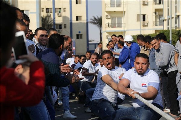 埃及公司總經(jīng)理張文超帶領(lǐng)公司高管團(tuán)隊(duì)觀戰(zhàn)并為參賽隊(duì)伍頒獎。比賽現(xiàn)場氣氛熱烈,隨著主裁判Mohamed一聲哨響,各隊(duì)伍展開了激烈的爭奪,加油聲、號子聲,聲聲入耳;歡呼聲、喝彩聲,振奮人心;通過比賽展現(xiàn)了巨石人團(tuán)結(jié)一心,攻堅(jiān)克難的優(yōu)良品質(zhì)。