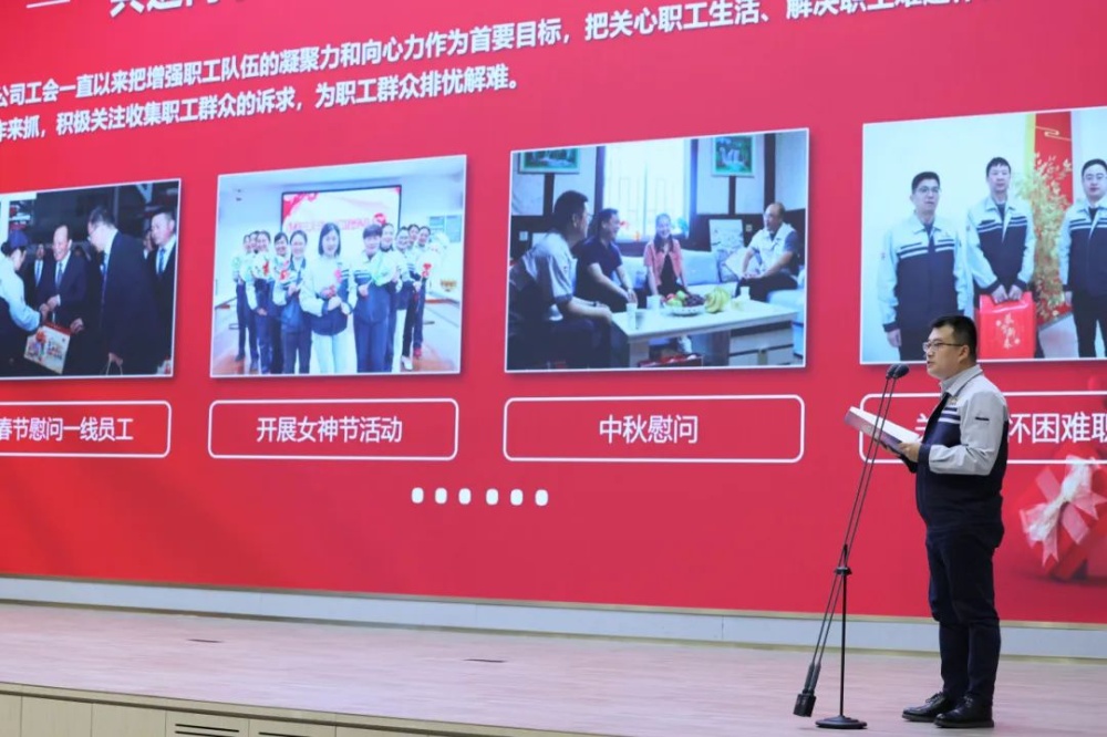 中國(guó)巨石行政管理總監(jiān)、工會(huì)副主席廖信林回顧總結(jié)了公司2023年的愛心、暖心為民服務(wù)和社會(huì)公益工作情況。