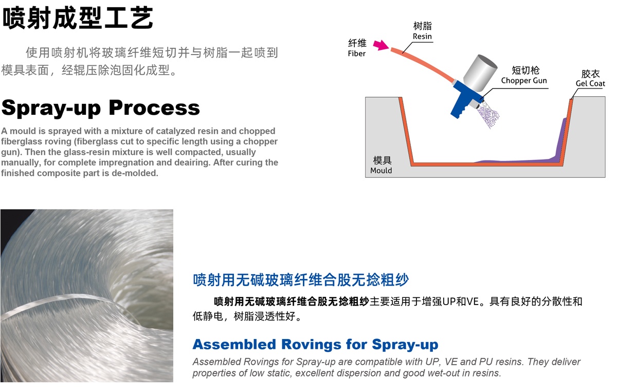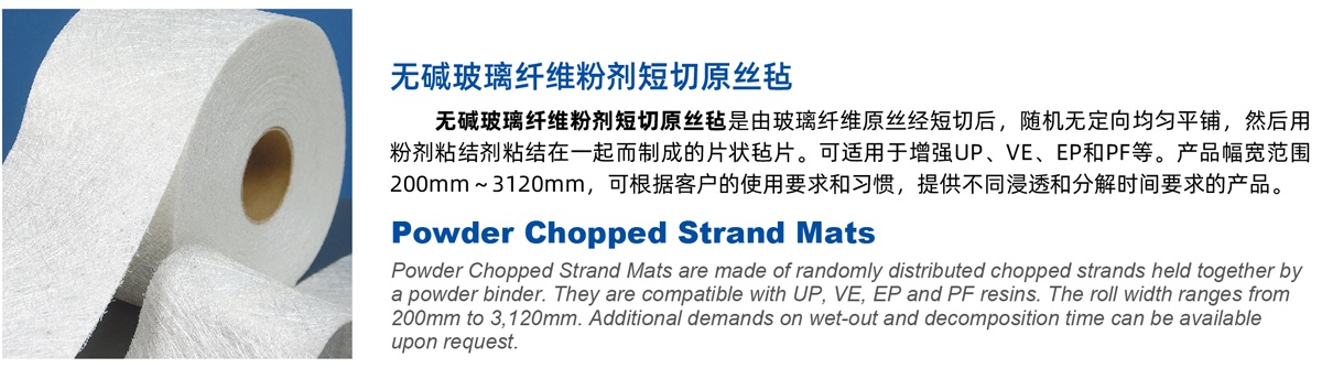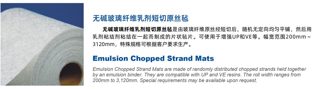 | E20 | 覆模性好,樹脂浸穿性好,浸透速度快,氣泡容易排除,減少輥壓次數(shù), 樹脂消耗少,制品機(jī)械強(qiáng)度高,優(yōu)異的耐酸腐蝕性 Good moldability, good wet-through and fast wet-out in resins, rapid air lease reducing rolling out times and increasing productivity, low resin consumption, high mechanical strength of composite products, superior acid corrosion resistance |