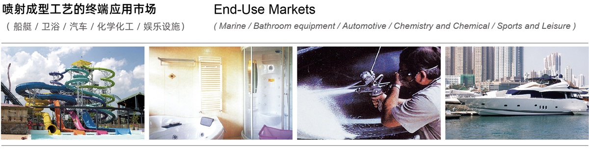 | 180 | 噴射操作順暢性好,浸透速度適中,易輥壓,易排泡, 小角度無回彈,制品力學(xué)性能和耐水性能優(yōu)異, 適合高速的機(jī)械手噴射工藝 Good runnability for spraying operation, moderate wet-out speed, easy roll-out, easy removal of bubbles,no spring back in sharp angles, excellent mechanical properties and hydrolytic resistance in parts, suitable for high-speed spray-up process with robots | 衛(wèi)浴、玻璃鋼船體、 汽車配件、化學(xué)貯罐 Sanitary ware, FRP hulls, auto parts, chemical storage tanks | |