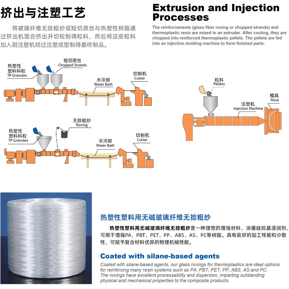 熱塑性塑料用無(wú)堿玻璃纖維無(wú)捻粗紗