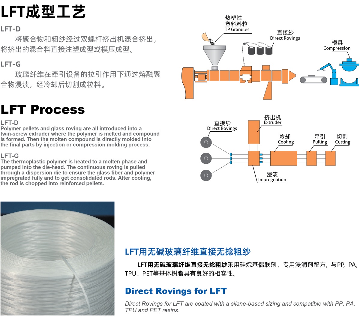 | 360A | GMT-UD用直接紗,紡織性能好 Direct roving for GMT-UD, excellent weaving property | |
