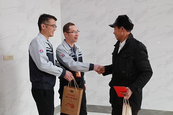 退休職工周某,生活一向困難,對(duì)公司每年春節(jié)前夕都來(lái)看望慰問(wèn),他激動(dòng)地緊緊握住沈士江的手連聲表示感謝。