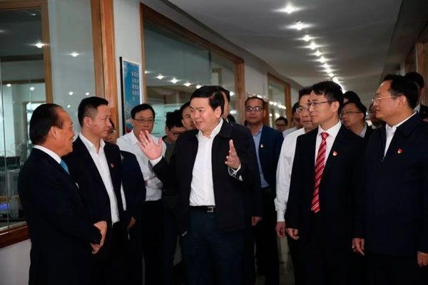 黃建發(fā)來到產品研發(fā)中心,邊走邊問,“現(xiàn)在企業(yè)研發(fā)投入占比是多少?”“企業(yè)擁有多少專利技術”······張毓強詳細介紹了公司的生產經營、黨組織建設、科研創(chuàng)新、人才發(fā)展等情況。
