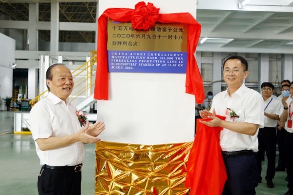 6月9日,中國巨石新材料智能制造基地年產(chǎn)15萬噸玻璃纖維生產(chǎn)線勝利點火,上午11:18,中國巨石總裁、巨石集團董事長兼CEO張毓強為池窯點火,并與楊國明總裁一同為池窯揭牌。