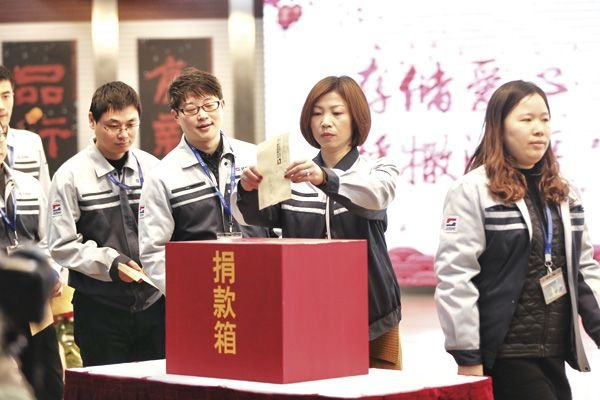 儀式簡短卻不簡單,小小的信封被依次投入捐款箱,每個人的一點奉獻逐漸匯聚成一條愛心大河。從公司高管、工會副主席、各分工會主席到普通員工,共有400多人參與捐款。