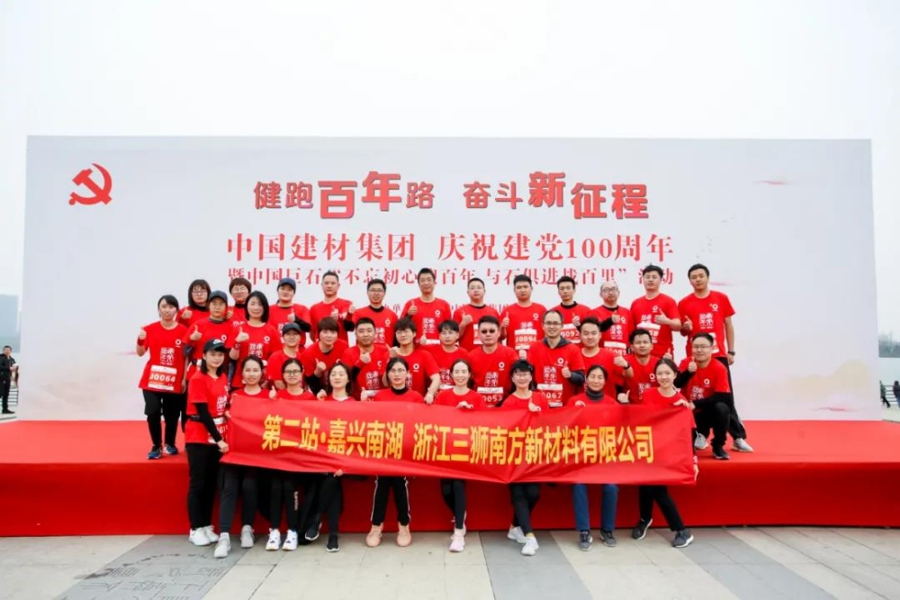 3月21日,中國建材集團(tuán)“健跑百年路 奮斗新征程”(嘉興站)慶祝建黨100周年暨中國巨石“不忘初心迎百年 與石俱進(jìn)戰(zhàn)百里”活動(dòng)在紅船精神誕生地嘉興成功舉行。中國巨石黨委書記、總裁張毓強(qiáng),中國新材院黨委書記施存有等中國建材所屬8家企業(yè)有關(guān)負(fù)責(zé)同志參加活動(dòng)。中國巨石黨委副書記、紀(jì)委書記周森林為活動(dòng)致辭。
