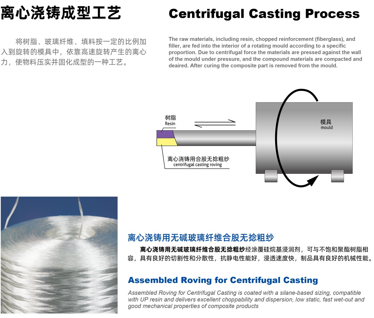 離心澆鑄用無堿玻璃纖維合股無捻粗紗