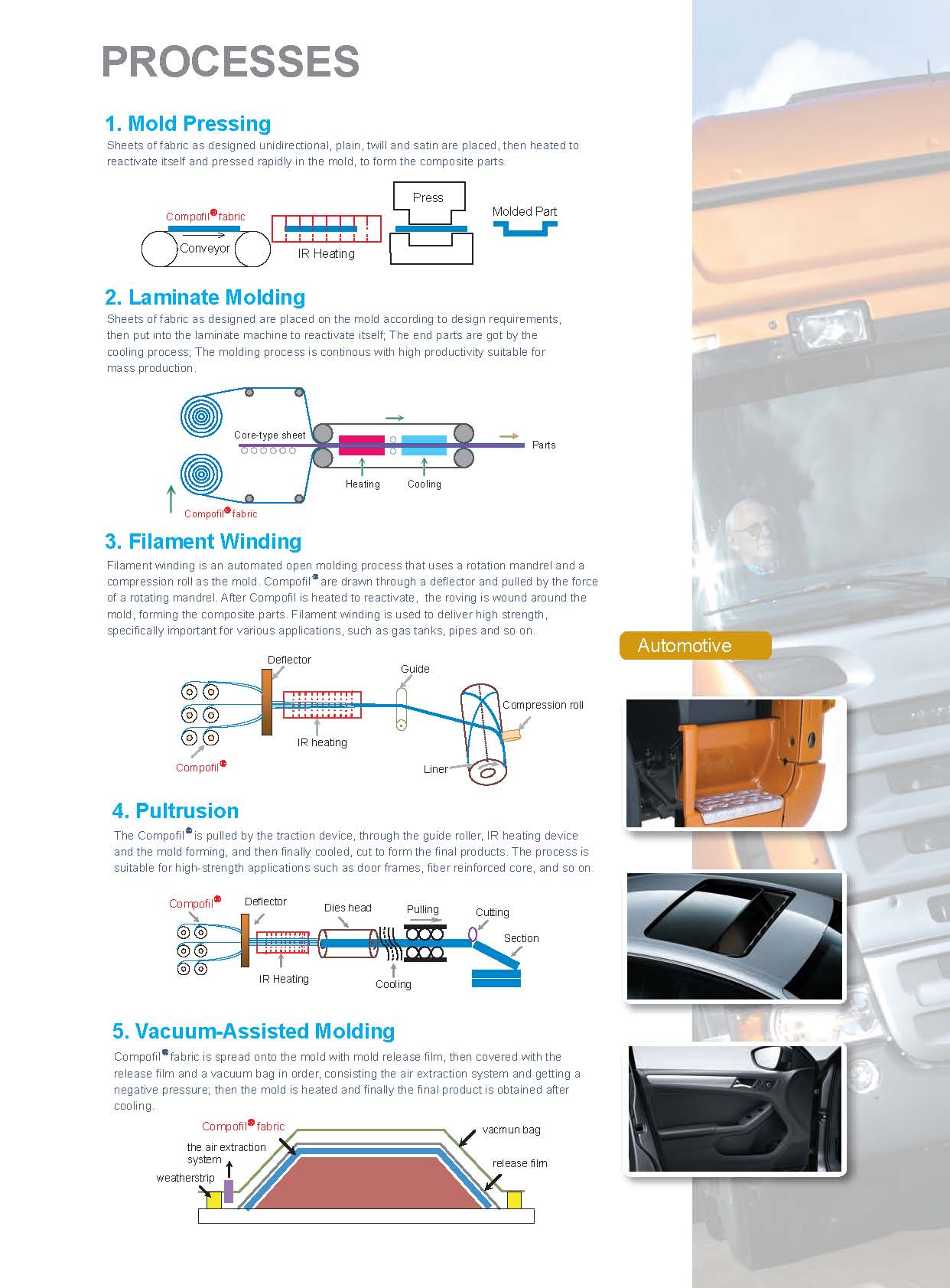 Compofil?是以連續(xù)玻璃纖維為原料,通過與熱塑性樹脂復(fù)合而成的高性能預(yù)浸料,可直接用來制備高性能連續(xù)玻璃纖維增強熱塑性復(fù)合材料,而不需要添加額外的樹脂。